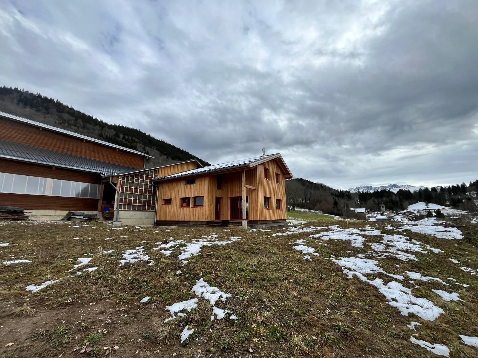 À Champ-Laurent, en Savoie (73), notre entreprise spécialisée en construction bois et charpente traditionnelle a réalisé une maison individuelle à ossature bois, attenante à un bâtiment agricole existant.