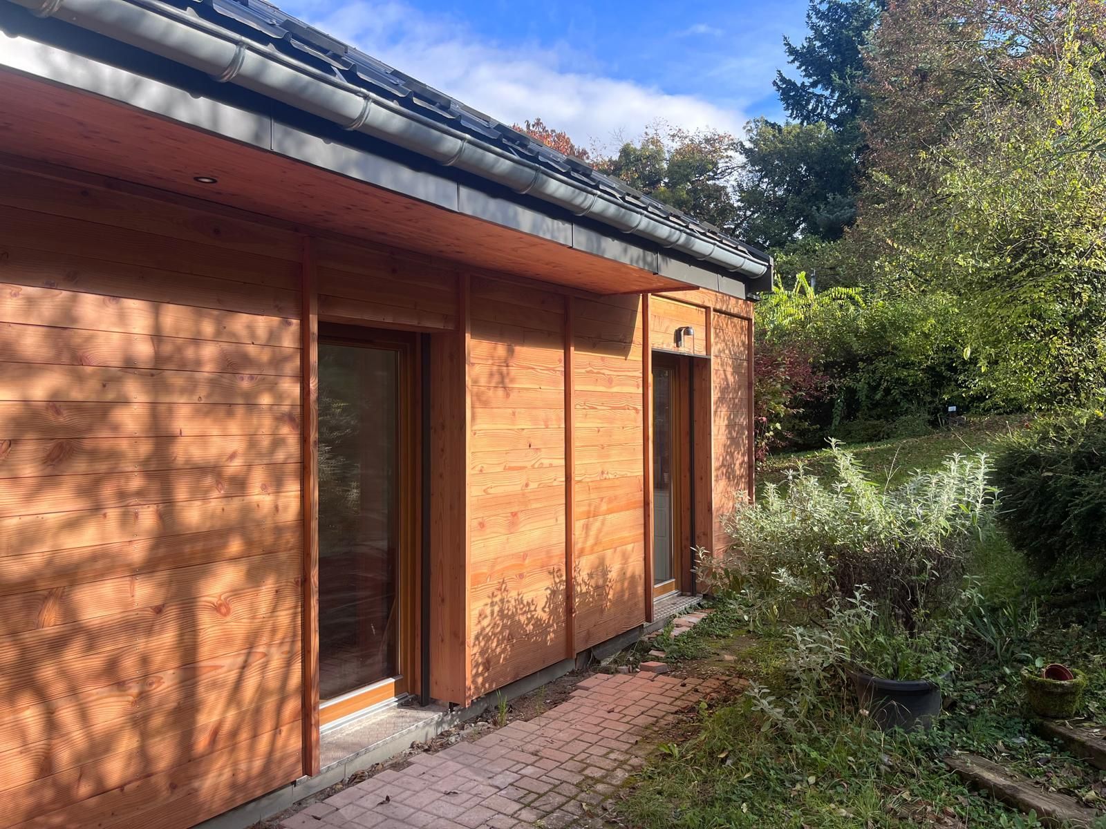 - Bardage en douglas, chaleureux, résistant aux intempéries et sans traitement chimique